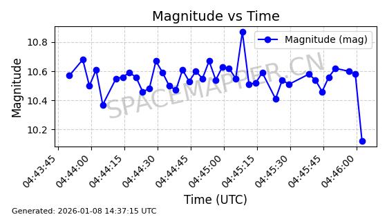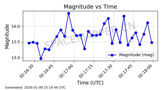 | BEIDOU 3M4 | 43108 | 43108 | 2018-01-11 同日期轨道 2018-003B 同批次轨道 | 在轨 | 773分钟 | 54.4661 | 21515.955 | 21540.229 | 0.0004349 | 2026-01-07 05:01:54 | ||