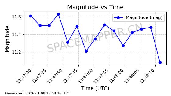 | BEIDOU 11 | 38091 | 38091 | 2012-02-24 同日期轨道 2012-008A 同批次轨道 | 在轨 | 1436分钟 | 3.1756 | 35727.945 | 35844.285 | 0.0013796 | 2026-01-08 04:19:40 | ||