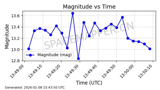 | BEIDOU 13 | 38251 | 38251 | 2012-04-29 同日期轨道 2012-018B 同批次轨道 | 在轨 | 773分钟 | 55.7978 | 21486.915 | 21569.529 | 0.0014802 | 2026-01-08 02:34:29 | ||