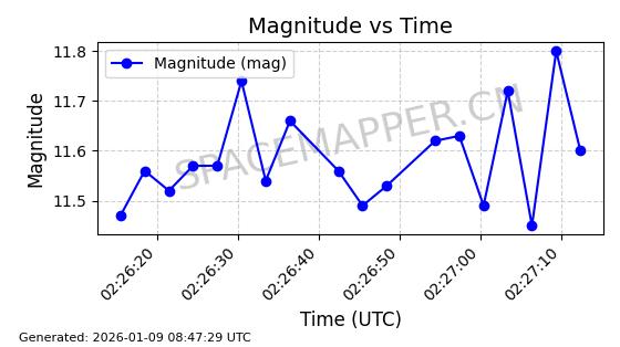| BEIDOU 3M11 | 43602 | 43602 | 2018-08-24 同日期轨道 2018-067A 同批次轨道 | 在轨 | 773分钟 | 54.1841 | 21502.722 | 21554.082 | 0.0009202 | 2026-01-07 21:29:13 | ||