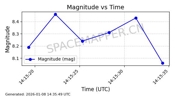 | FENGYUN 2E | 33463 | 33463 | 2008-12-23 同日期轨道 2008-066A 同批次轨道 | 在轨 | 1453分钟 | 8.9023 | 36105.98 | 36119.06 | 0.0001539 | 2026-01-08 08:21:58 | ||