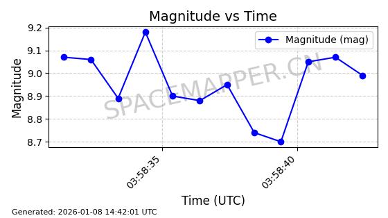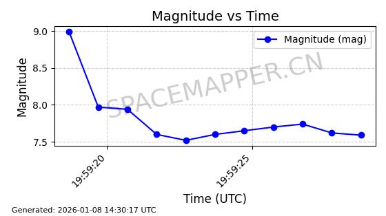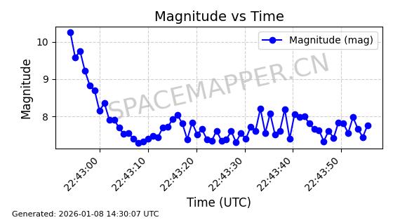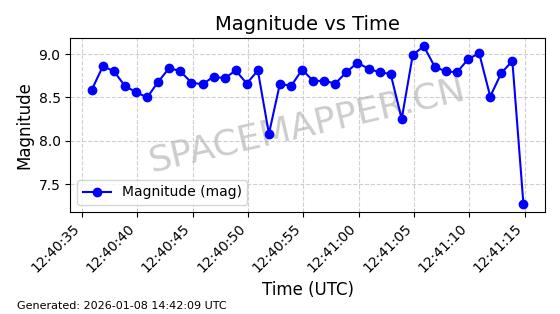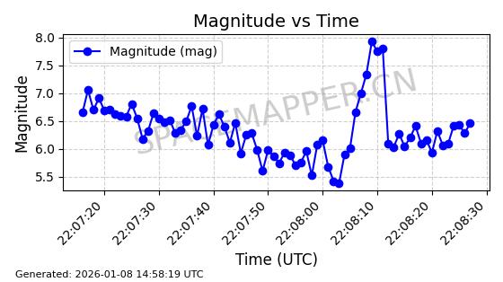 | GEESAT 1-02 | 52786 | 52786 | 2022-06-02 同日期轨道 2022-058B 同批次轨道 | 在轨 | 96分钟 | 49.9970 | 576.886 | 586.928 | 0.0007214 | 2026-01-08 07:14:39 | ||