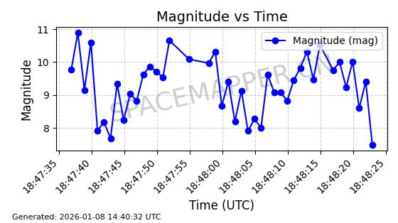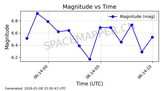 | GLOBALSTAR M062 | 26082 | 26082 | 2000-02-08 同日期轨道 2000-008B 同批次轨道 | 在轨 | 116分钟 | 51.9820 | 1486.437 | 1497.323 | 0.0006915 | 2026-01-08 06:44:09 | ||