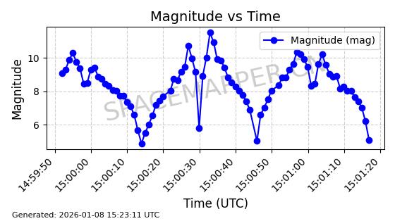 | GLOBALSTAR M087 | 52888 | 52888 | 2022-06-19 同日期轨道 2022-064A 同批次轨道 | 在轨 | 114分钟 | 51.9970 | 1412.836 | 1414.408 | 0.0001008 | 2026-01-08 05:03:27 |