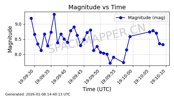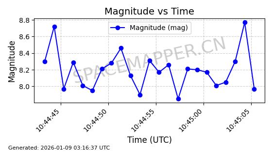 | GLOBALSTAR M030 | 25854 | 25854 | 1999-07-10 同日期轨道 1999-037D 同批次轨道 | 在轨 | 125分钟 | 51.9894 | 1885.501 | 1891.123 | 0.0003400 | 2026-01-08 06:09:47 | ||