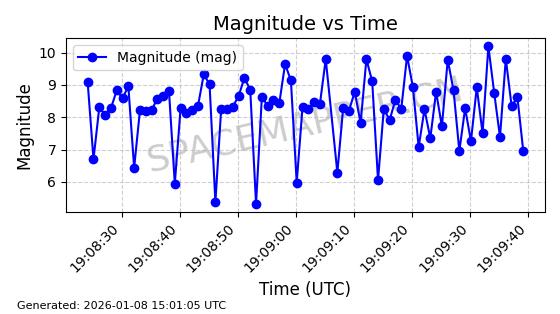 | GLOBALSTAR M057 | 25943 | 25943 | 1999-10-18 同日期轨道 1999-058A 同批次轨道 | 在轨 | 118分钟 | 51.9986 | 1569.066 | 1574.064 | 0.0003143 | 2026-01-08 00:38:34 | ||
