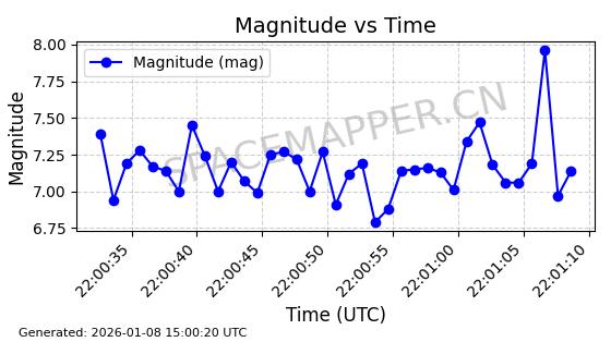 | GLOBALSTAR M064 | 26084 | 26084 | 2000-02-08 同日期轨道 2000-008D 同批次轨道 | 在轨 | 121分钟 | 52.0056 | 1731.257 | 1733.911 | 0.0001635 | 2026-01-08 06:16:56 | ||