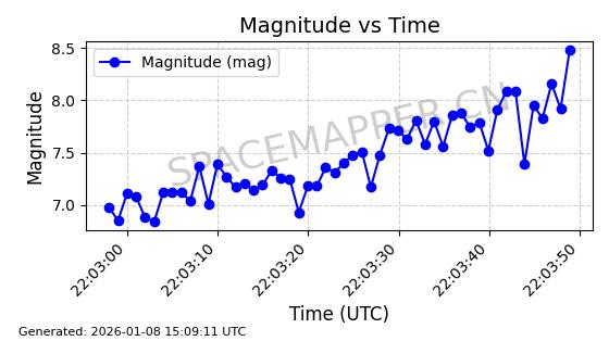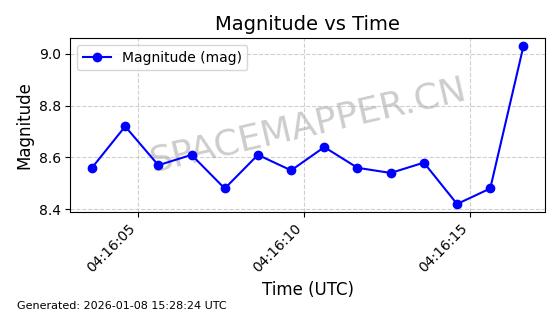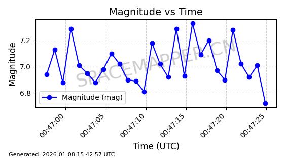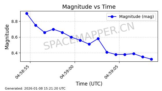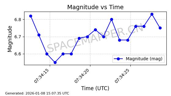 | METEOR 1-15 | 6659 | 6659 | 1973-05-29 同日期轨道 1973-034A 同批次轨道 | 在轨 | 102分钟 | 81.1873 | 837.508 | 877.726 | 0.0027791 | 2026-01-08 05:15:02 | ||