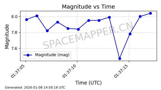 | METEOR 1-19 | 7490 | 7490 | 1974-10-28 同日期轨道 1974-083A 同批次轨道 | 在轨 | 102分钟 | 81.1900 | 835.56 | 879.478 | 0.0030348 | 2026-01-08 07:30:48 | ||
