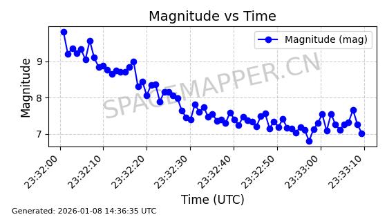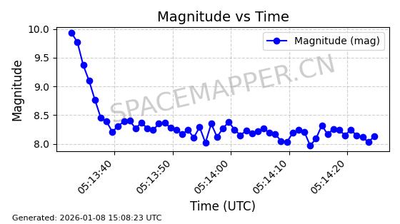 | METEOR 2-9 | 13718 | 13718 | 1982-12-14 同日期轨道 1982-116A 同批次轨道 | 在轨 | 102分钟 | 81.2510 | 800.255 | 878.119 | 0.0053942 | 2026-01-08 03:14:56 | ||