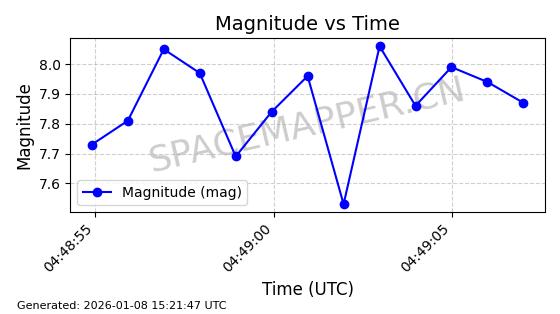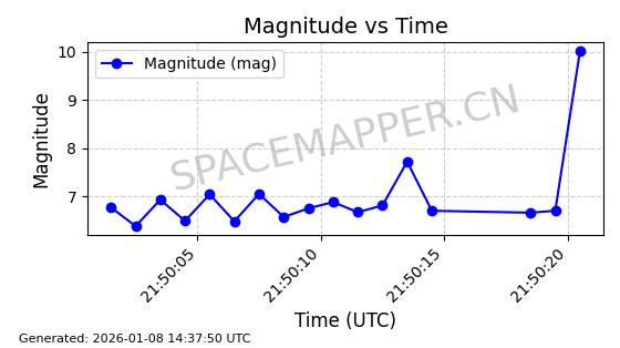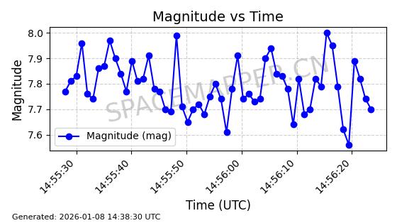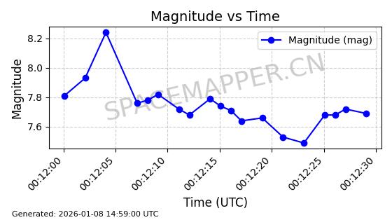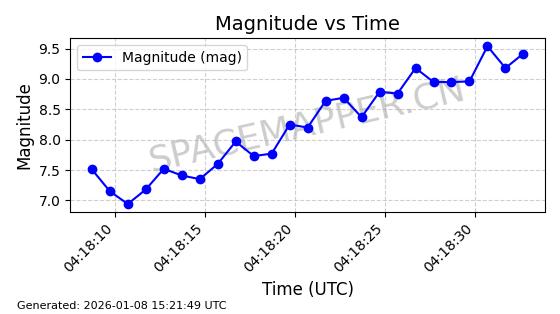 | METEOR 1-21 | 7714 | 7714 | 1975-04-01 同日期轨道 1975-023A 同批次轨道 | 在轨 | 102分钟 | 81.1939 | 843.201 | 886.131 | 0.0029635 | 2026-01-08 08:04:04 | ||