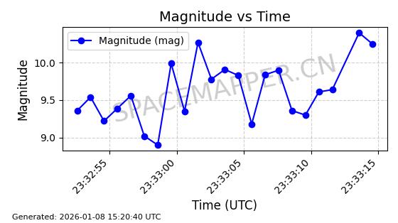 | METEOR 2-20 | 20826 | 20826 | 1990-09-28 同日期轨道 1990-086A 同批次轨道 | 在轨 | 104分钟 | 82.5263 | 937.467 | 958.845 | 0.0014589 | 2026-01-08 06:58:18 | ||