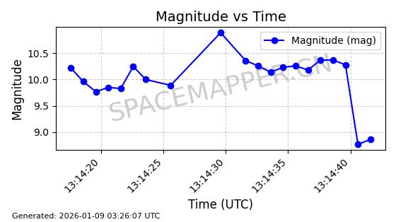 | METEOR 1-13 | 6256 | 6256 | 1972-10-26 同日期轨道 1972-085A 同批次轨道 | 在轨 | 102分钟 | 81.2733 | 841.647 | 880.887 | 0.0027101 | 2026-01-08 07:44:35 | ||