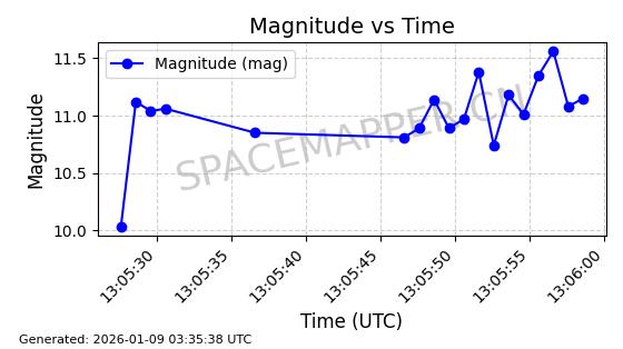 | O3B PFM | 39191 | 39191 | 2013-06-25 同日期轨道 2013-031D 同批次轨道 | 在轨 | 288分钟 | 0.0423 | 8059.417 | 8072.349 | 0.0004476 | 2026-01-07 07:51:11 | ||