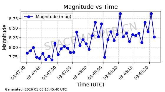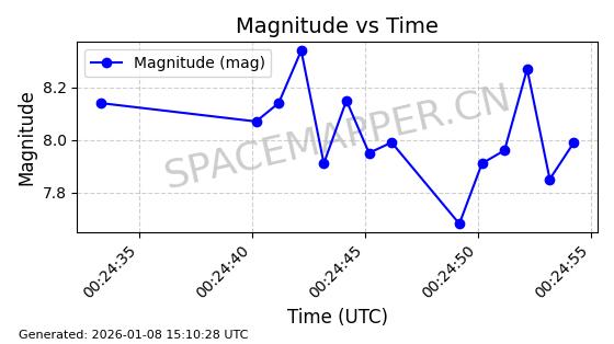 | COSMOS 755 | 8072 | 8072 | 1975-08-14 同日期轨道 1975-074A 同批次轨道 | 在轨 | 105分钟 | 82.9035 | 964.701 | 1004.339 | 0.0026918 | 2026-01-08 07:00:42 | ||