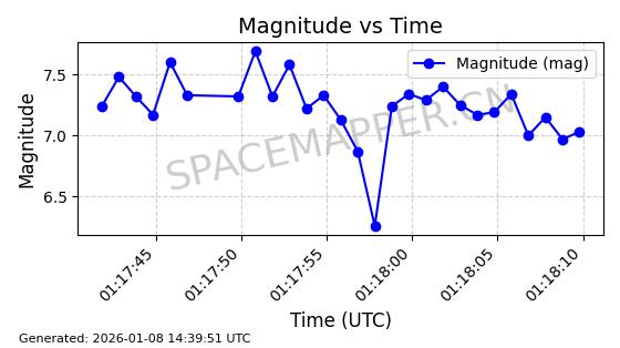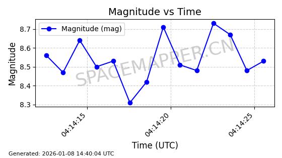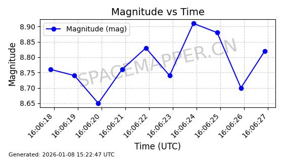 | COSMOS 1959 | 19324 | 19324 | 1988-07-18 同日期轨道 1988-062A 同批次轨道 | 在轨 | 105分钟 | 82.9489 | 952.385 | 1001.423 | 0.0033335 | 2026-01-08 04:26:57 | ||