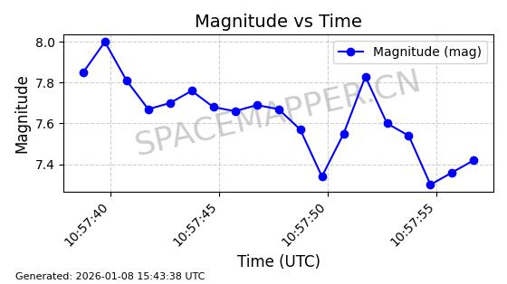 | COSMOS 789 | 8591 | 8591 | 1976-01-20 同日期轨道 1976-005A 同批次轨道 | 在轨 | 105分钟 | 82.9760 | 966.834 | 1009.446 | 0.0028923 | 2026-01-08 07:33:10 | ||