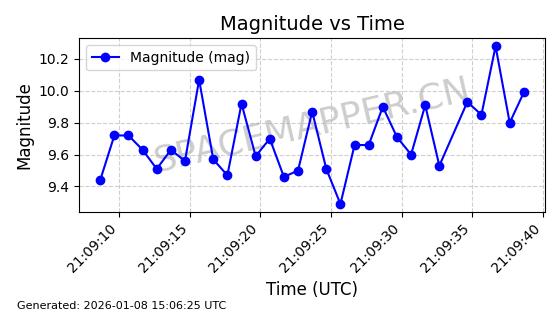 | CALSPHERE 1 | 900 | 900 | 1964-10-06 同日期轨道 1964-063C 同批次轨道 | 在轨 | 105分钟 | 90.2189 | 956.996 | 996.3 | 0.0026720 | 2026-01-08 04:15:19 | ||