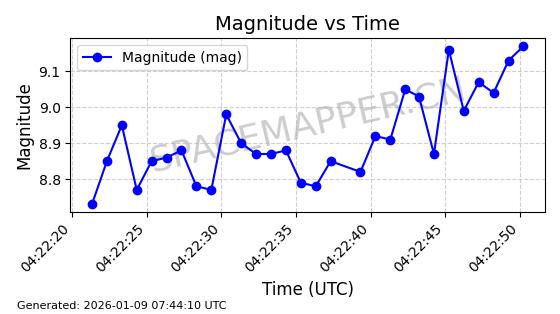| SURCAL 159 | 2872 | 2872 | 1967-05-31 同日期轨道 1967-053F 同批次轨道 | 在轨 | 103分钟 | 69.9754 | 888.792 | 901.892 | 0.0009005 | 2026-01-08 06:47:44 | ||