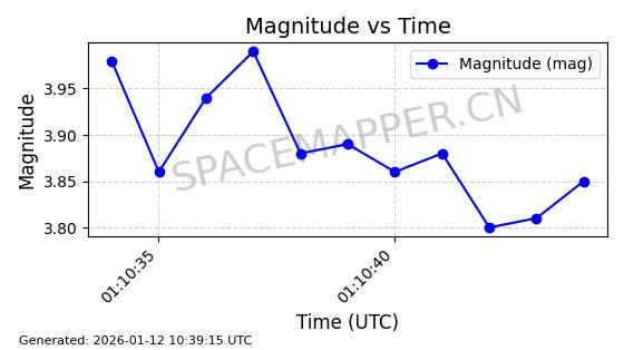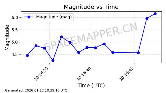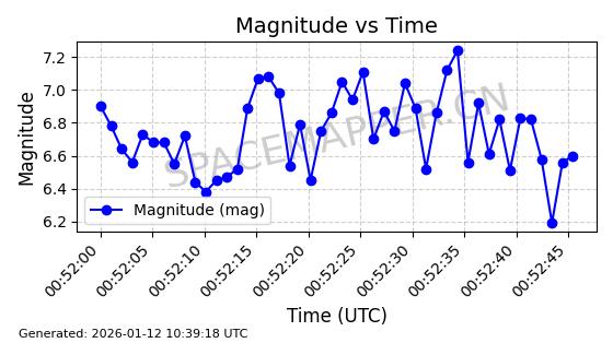 | STARLINK-31520 | 59210 | 59210 | 2024-03-11 同日期轨道 2024-046K 同批次轨道 | 在轨 | 94分钟 | 53.1601 | 474.417 | 476.003 | 0.0001157 | 2026-01-11 12:13:42 | ![]() | |