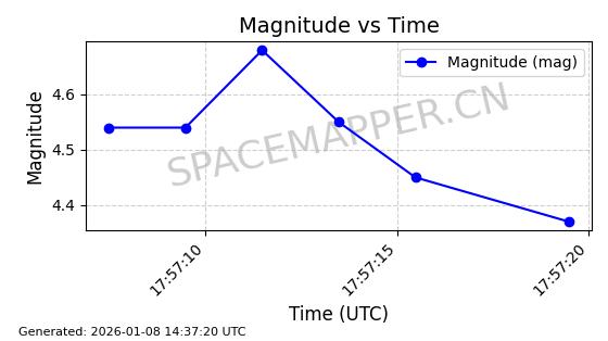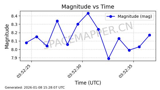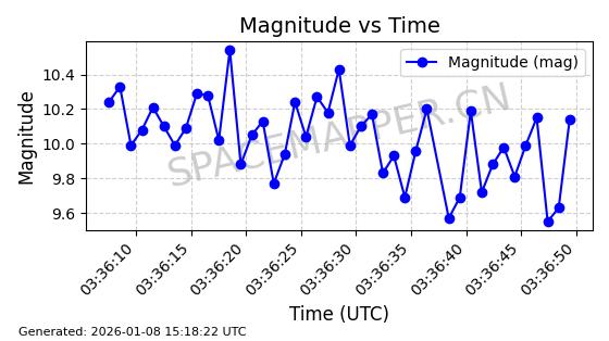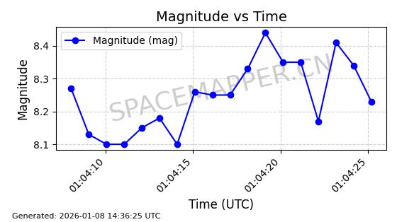 | TIANQI 27 | 59911 | 59911 | 2024-05-29 同日期轨道 2024-102C 同批次轨道 | 在轨 | 103分钟 | 44.9773 | 892.376 | 901.42 | 0.0006215 | 2026-01-08 05:41:03 | ||